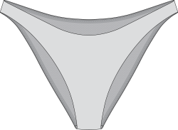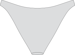 Купальные трусики слипы из эластичного трикотажного полотна/бифлекса. Линия талии переда трусиков имеет плавный вырез в форме «галочки». Трусики на подкладке с боковыми швами и швом по ластовице по задней детали. Срез по талии и линии ног обрабатывается латексной резинки закрытыми швами.